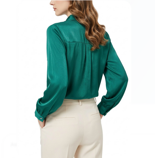 Timeless & Elegant Premium Satin V-neck Pleated Long Sleeve Blouses for Women - B13-TOP-89