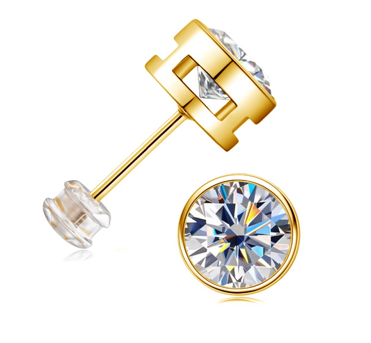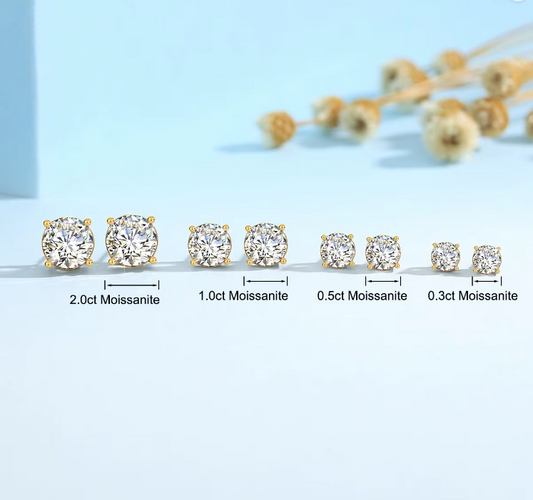 18K Gold Au750 Gold 0.3/0.5 Carat D Color Vvs1 Moissanite Diamond Stud Earrings - B1-G-ER-01