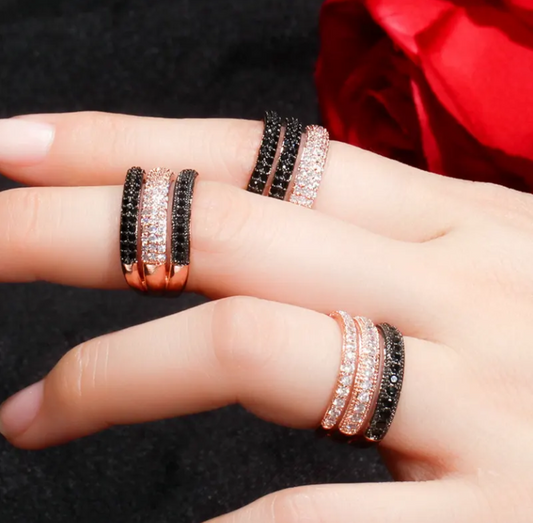 Adjustable Size 3 Layers Black White CZ Stone 585 Rose Gold Color RING RG-08