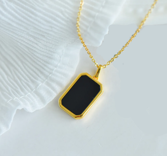 18k Gold Pendant - 5d Real Hard Gold Rectangular Natural Black Agate 1 Gram Stone Setting Pendant B1-GNC-03