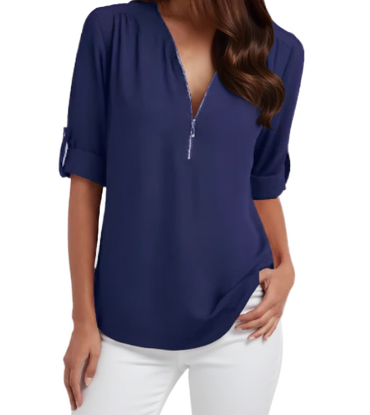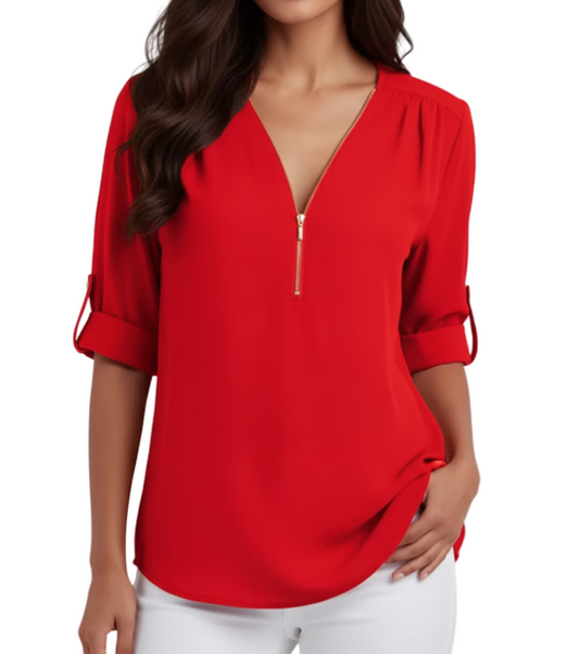 BPARAS- Trendy & Timeless Women's Elegant Zip-UP V-neck SHIRT-BL100