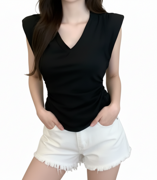 Casual V-neck Slim Waist Short Sleeve Women's T-shirt - B6-TOP-B655