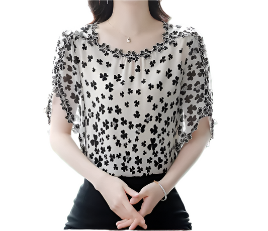 BPARAS- Women's Elegant Floral Chiffon Ruffled Neck & Ruffle Sleeves SHIRT-BL101