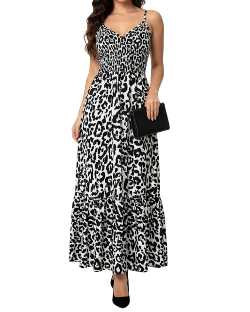 Classy & Elegant Leopard Print Shoulder Strapped Long DRESS-B40