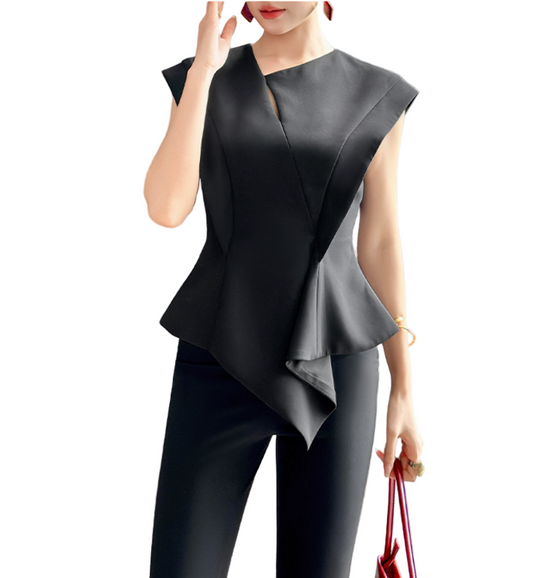 Trendy & Elegant Structured V-Neck Peplum Sleeveles Blouse Blazer - B4-BLZ-07