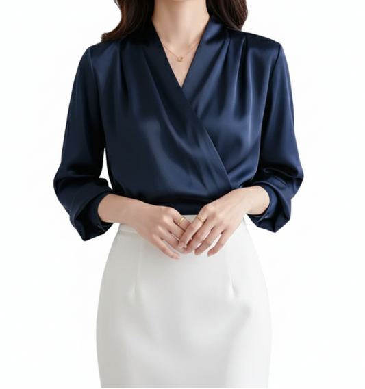 Classy & Timeless Silk Satin V-neck Versatile Women's Shirts - B6-TOP-B679