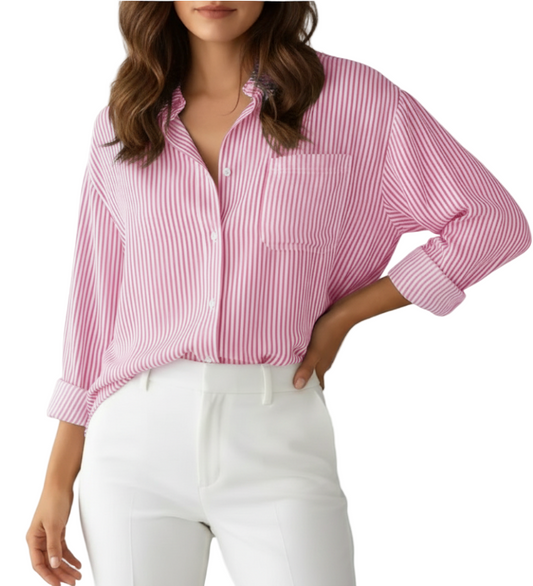 Classy & Timeless Stripped Long Sleeve Versatile Shirt for Women - SM8-TOP-66