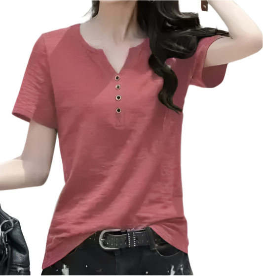Women’s Cotton Short Sleeve V-neck Button SHIRT-BL141