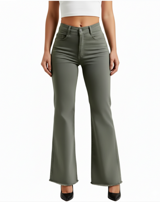 Women’s High Waist frayed bottom Cargo JEANS-JP-11