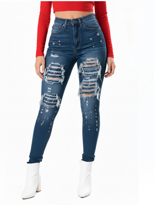 Women’s Skinny Ripped Distressed High Waist JEANS-JP-06