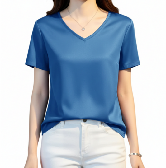 Women’s Mulberry Silk & Cotton V-neck Short Sleeve SHIRT-BL107