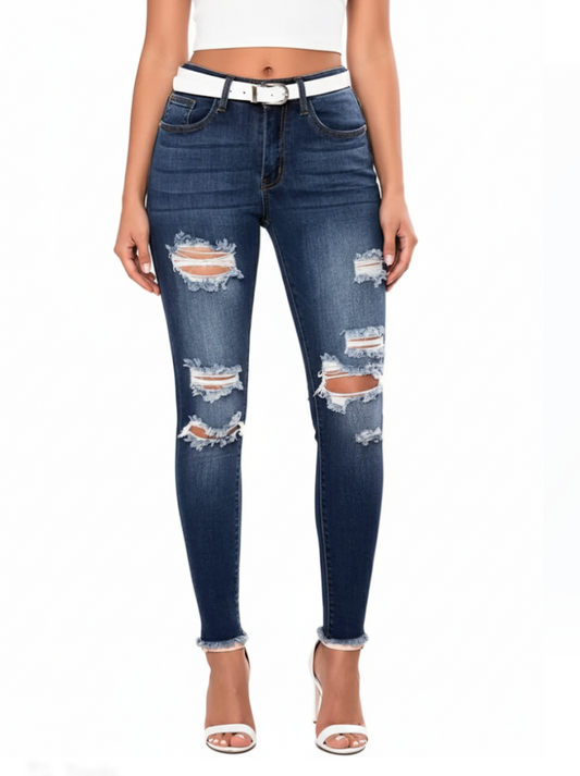 Women’s Skinny Ripped Distressed Mid Waist JEANS-JP-28