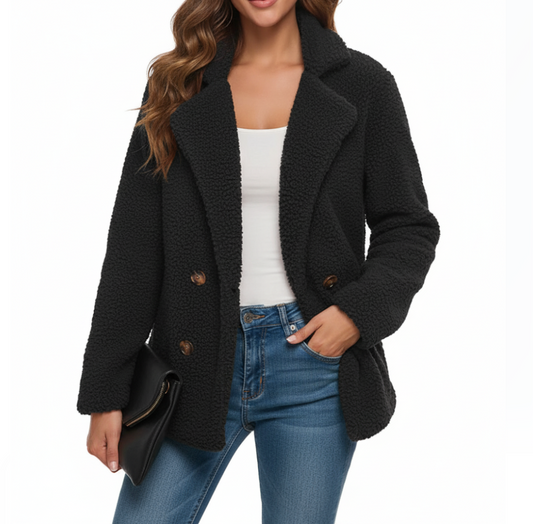 Women’s Trendy Warm Furry Fleece Button Lapel Collar Pocket JACKET-JKT-41