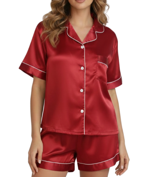 Comfortable Soft Short Sleeve Red Shorts Pajama Set for Women -B16-PJ-74