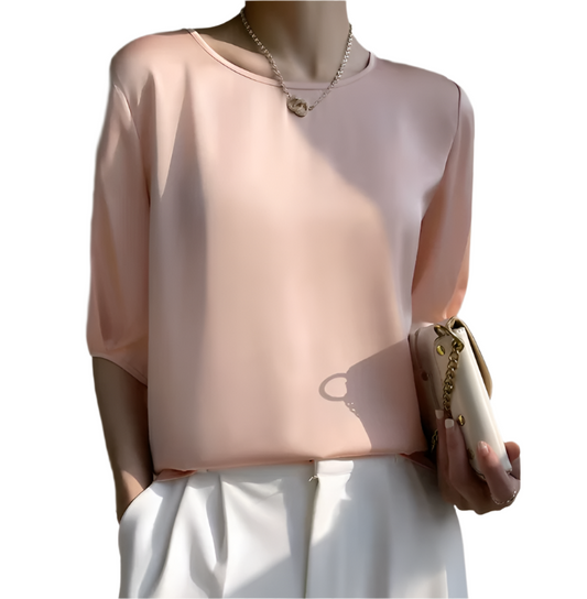 Trendy Silk Short Sleeve Women's Versatile Top - SM-9 - TOP -11