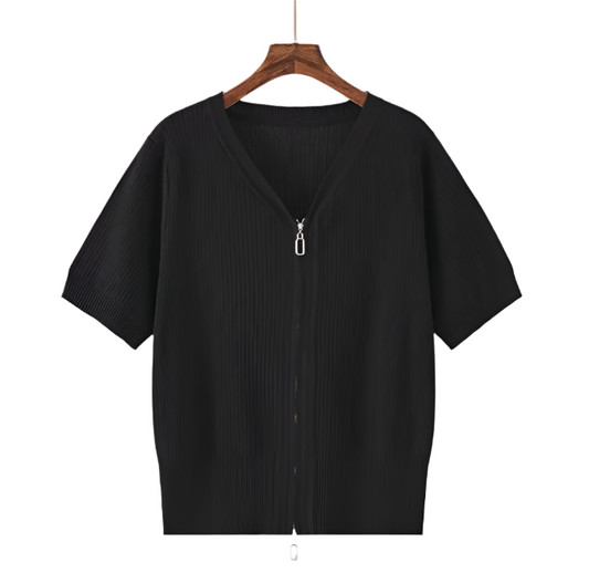 Trendy Double Zipper Short Sleeve Thin Ice Silk Women's Top Blouse - B6-TOP-B611