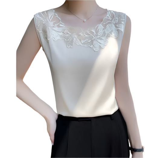 Trendy & Elegant Round Neck Sleeveless Mesh Splice Versatile Women's Vest Blouse - B6-TOP-B617