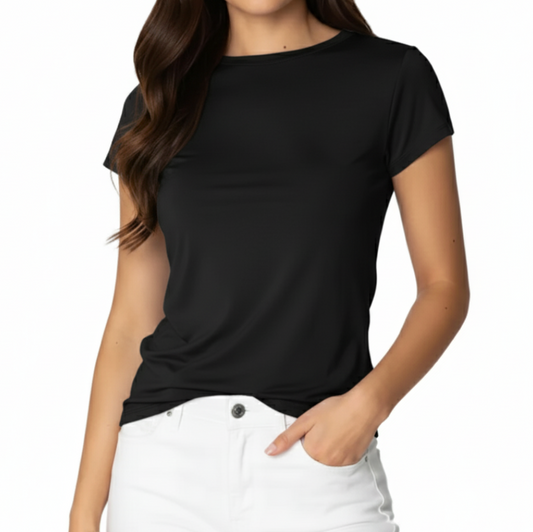 Round Neck Short Sleeved Basic Women's T-shirt -B6-TOP-B612
