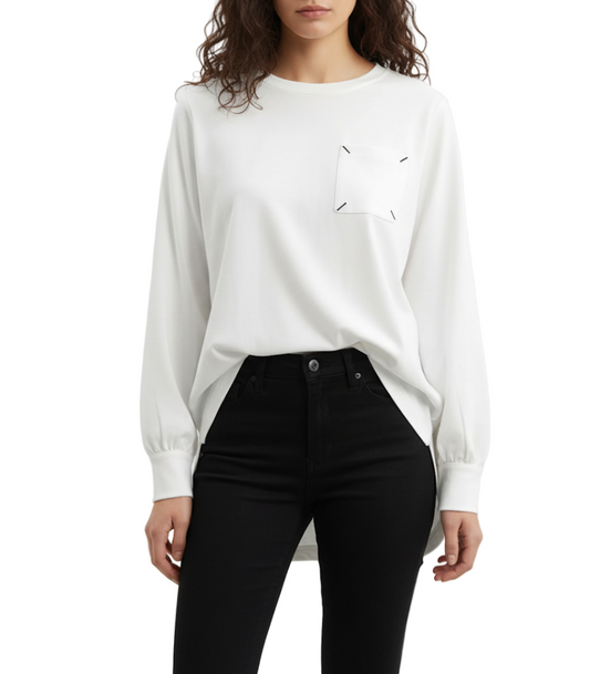 Trendy & Elegant Round Neck Long Loose Fit Cotton Women's T-shirt - B6-TOP-B605