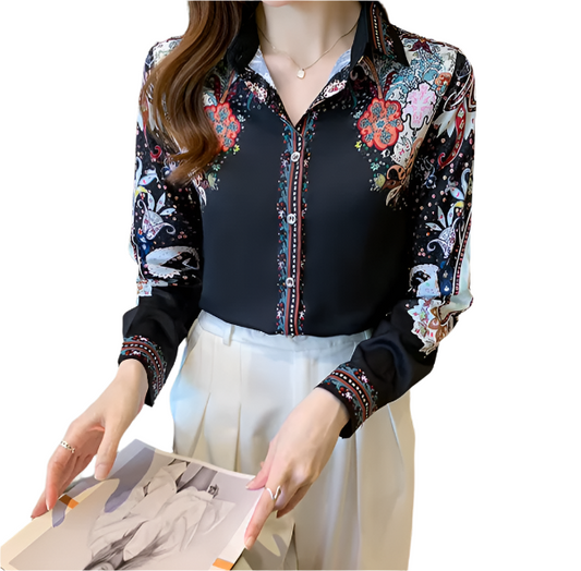 Trendy & Elegant Printed Silk Long Sleeved Women's Shirts - B6-TOP-B677