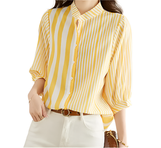 Trendy Striped Stand Up Collar Versatile Loose Fit Women's Shirts - B6-TOP-B678