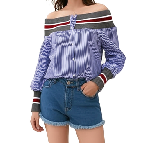 Trendy & Elegant Striped Off Shoulder Women's Shirts - B6-TOP-B671