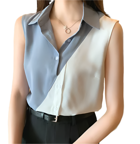 Trendy Two-Tone Sleeveless Chiffon Women's Shirts - B6-TOP-B688