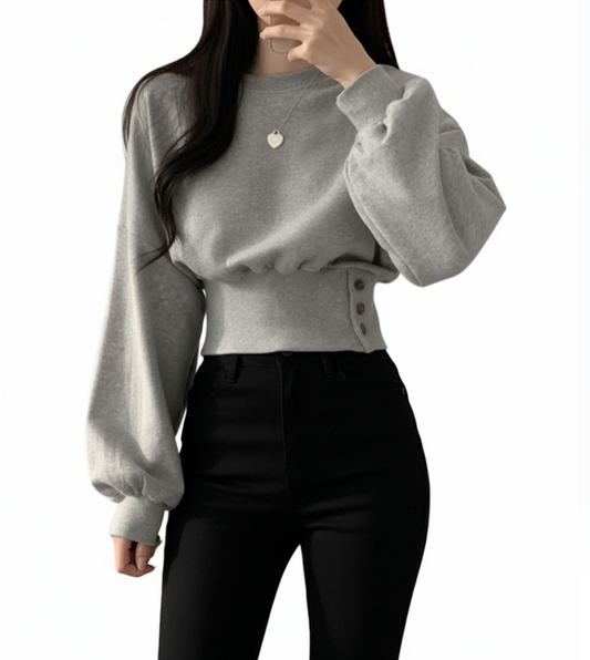 Trendy Round Neck Slim Waist Long Sleeve Pullover Women's Top -B6-TOP-B684