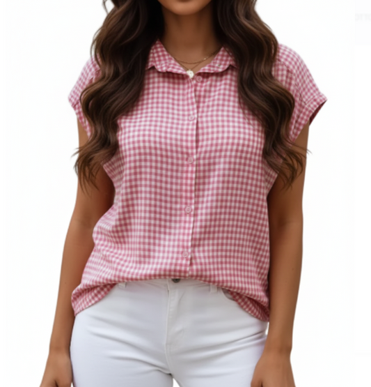 Trendy Checkered Collar Shirt for Women TOP-B1-BL-232