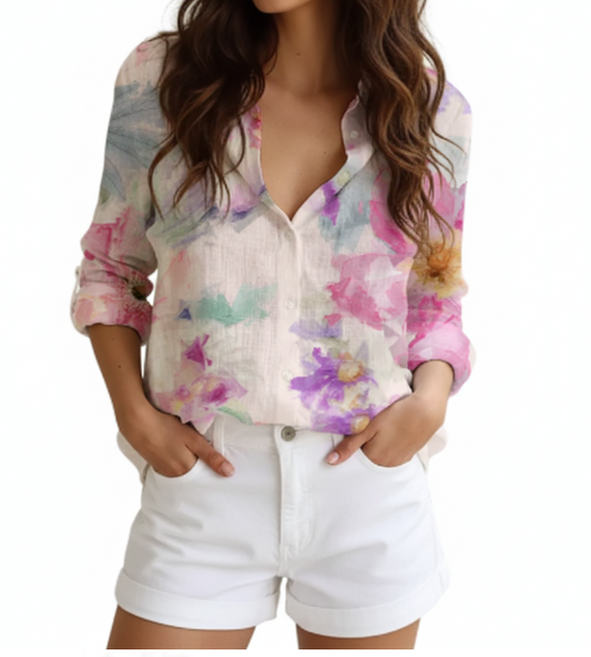 Women's Cotton Turn-down Collar Button Floral Print SHIRT-BL119A