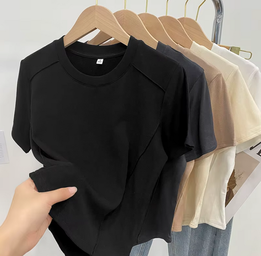Solid Color Round-neck Short Sleeved T-shirt For Women - SM8-TOP-39