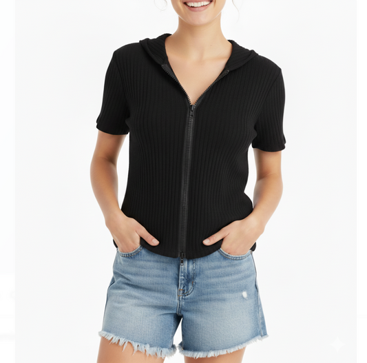 Trendy & Timeless Girl's Hooded Short-sleeve Zip-Up Front Closure Top SHIRT-BL121