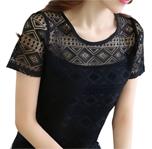 Trendy Women's Lace Short Sleeve Blouse SHIRT-BL140