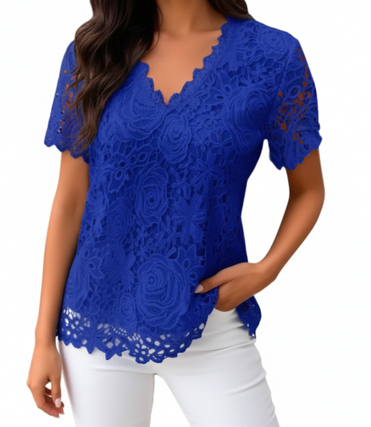 Trendy Women's Elegant Lace V-neck Top SHIRT-BL115