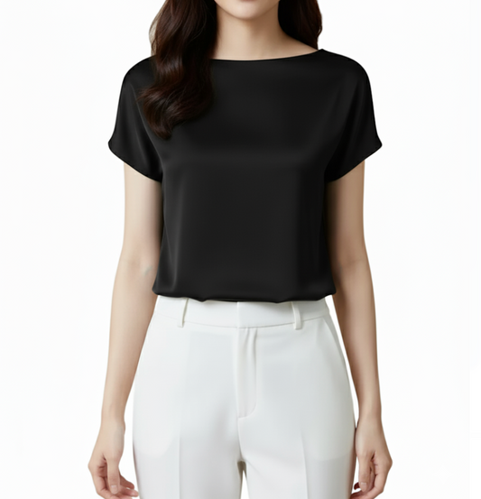 Timeless Women's Stain Silk Small to Plus Size O-neck Short Sleeve SHIRT-BL138