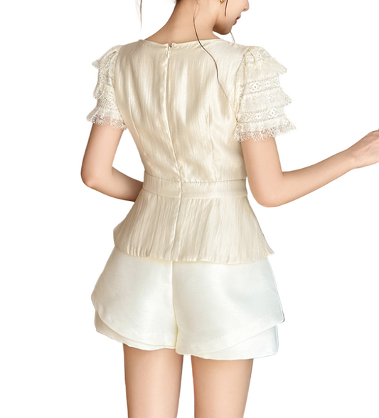 Trendy & Elegant Cap Sleeve Soft Lace V-Neck Blouses - B4-TOP-B06