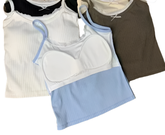 Pack of 3 - French Lace Spaghetti Straps Camisole V-Neck Fixed Cup Bra - UGS-02-T-BRA-13