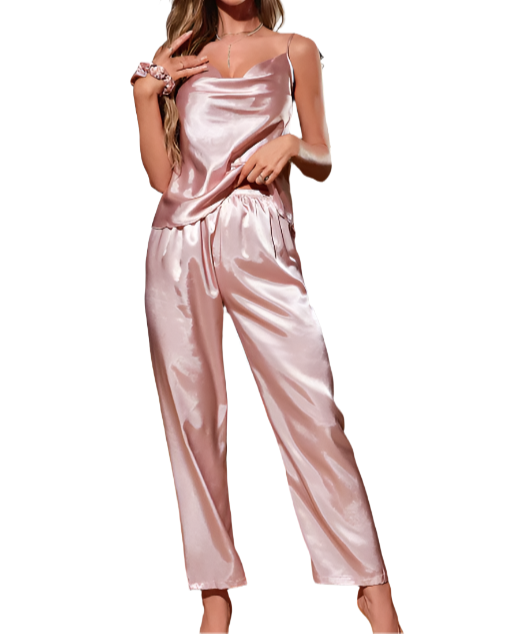 Luxury Soft Ice Silk Sleepwear Set Spaghetti Strip Top Wide Leg Pants PAJAMAS-PJS-08