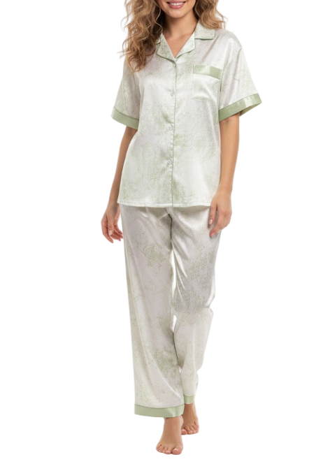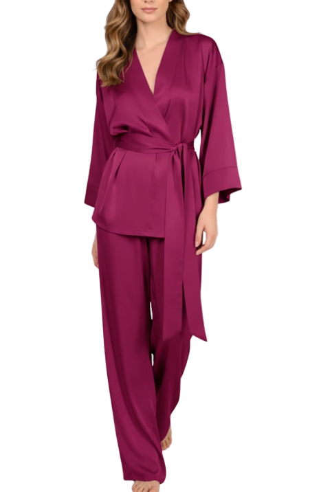 Comfortable Soft Satin-Silk Wide Sleeve Pajama Set for Women -B16-PJ-17