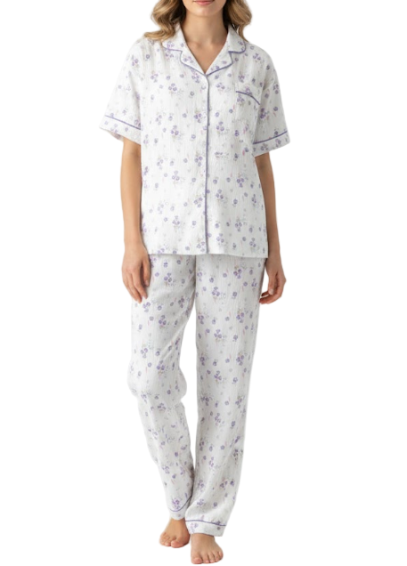 Comfortable Floral Print Cloud Cotton Short Sleeve Pajamas for Women -B16-PJ-04