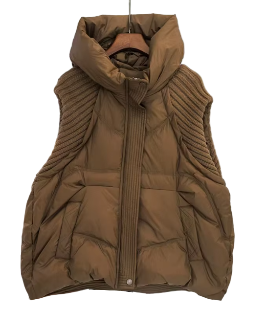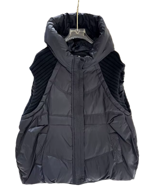Timeless Design Hooded Knitted Sleeveless Spliced Warm White Duck Down Vest for Women - B12-JKT-14