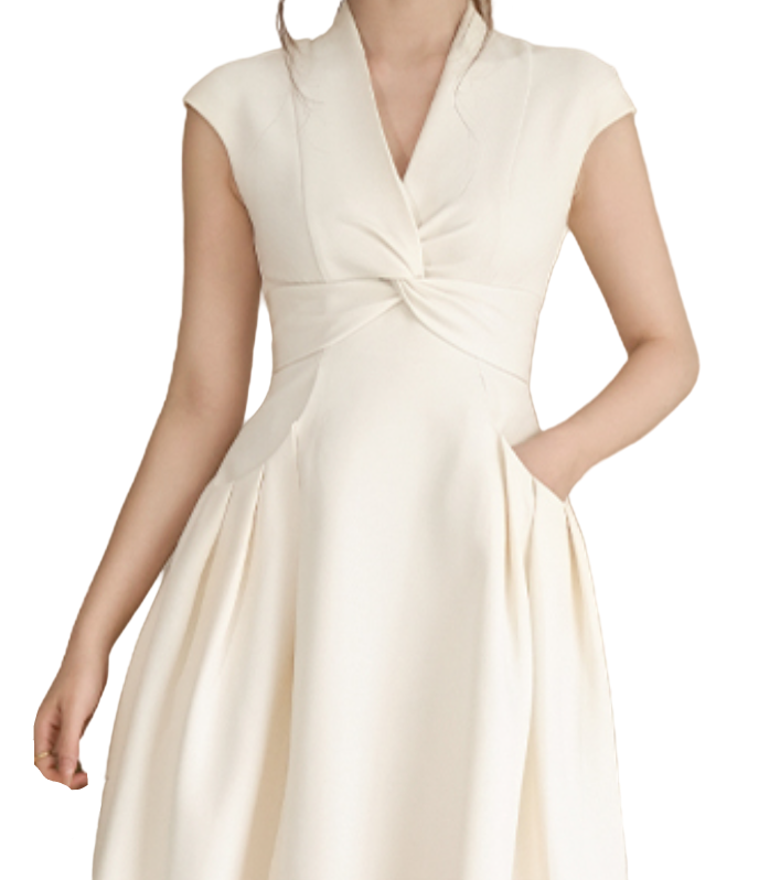 Timeless & Elegant Apricot Twist Front V - Neck and Cap Sleeves Dress for Women - B4-DRESS-B334