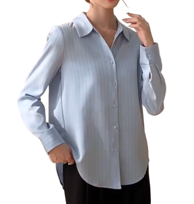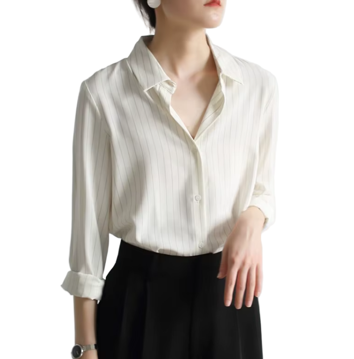 Timeless & Elegant Turn Down Collar Long Sleeve Stripped Satin Shirts for Women - B13-TOP-99