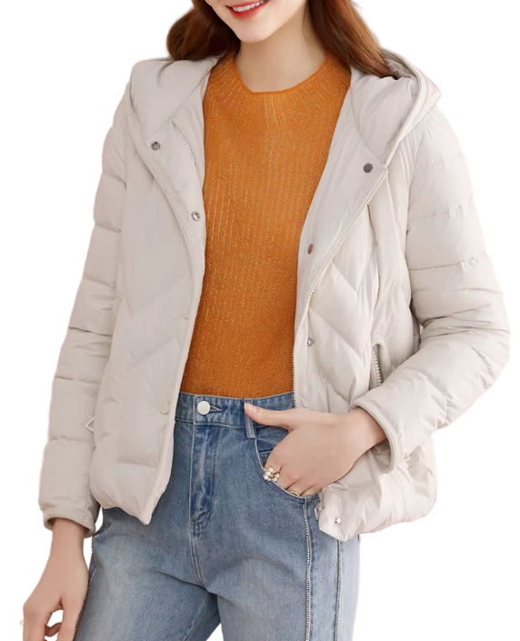 Timeless Hooded Lightweight Pocket Zipper 90% White Duck Down Jacket for Women - B12-JKT-64