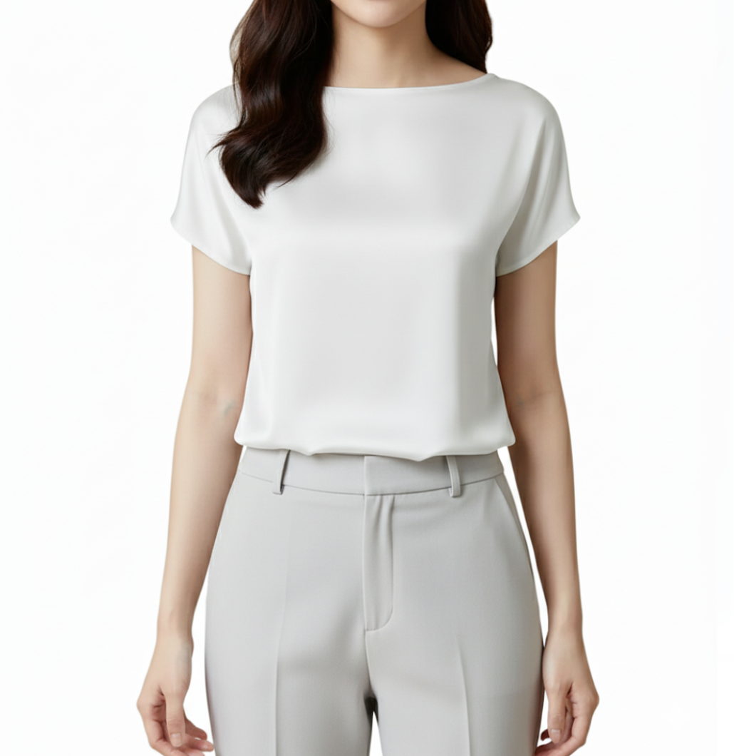 Timeless Women's Stain Silk Small to Plus Size O-neck Short Sleeve SHIRT-BL138