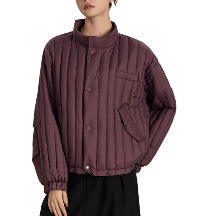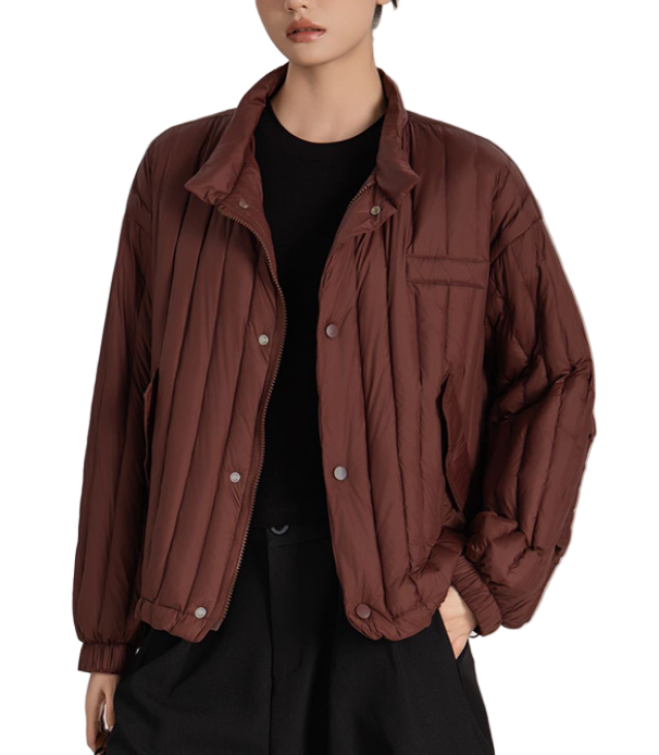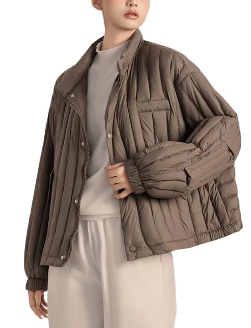 Trendy & Elegant Lightweight Loose Fit Stand up Collar Warm White Duck Down Quilted Jacket for Women - B12-JKT-76