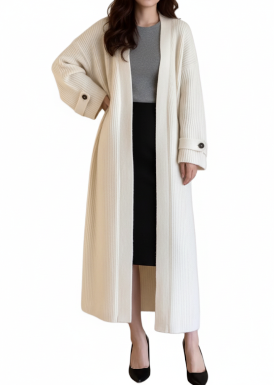 Trendy & Timeless High-class V-neck Soft Skin Friendly Knitted Cardigan Loose Knee Length Sweater Coat - B6-JKT-600