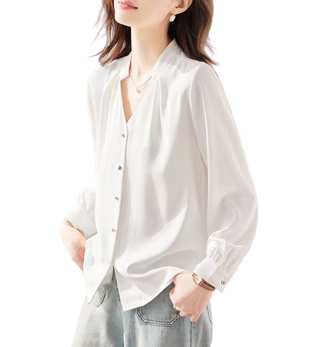 Trendy & Timeless Long Sleeve Button-up V-neck Shirts for Women - B15-TOP-40